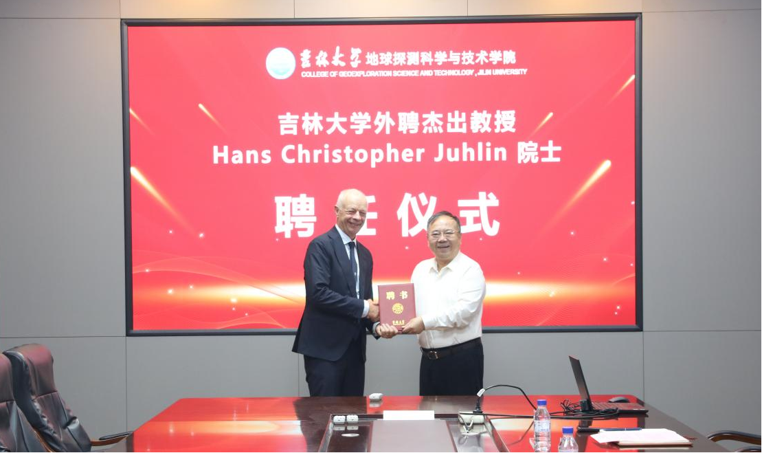仪式上,韩喜平代表学校对Juhlin(朱林)院士的加盟表示欢迎,他表示,此次聘任仪式是我校推进国际化战略、加强高层次人才队伍建设进程中的一个重要举措,将进一步激活我校地球物理学科底蕴深厚、特色鲜明的优势,极大地提升我校在相关领域的原始创新能力与国际学术影响力。朱蓓蓓宣读学校聘任决定。韩喜平为Juhlin(朱林)院士颁发聘书。