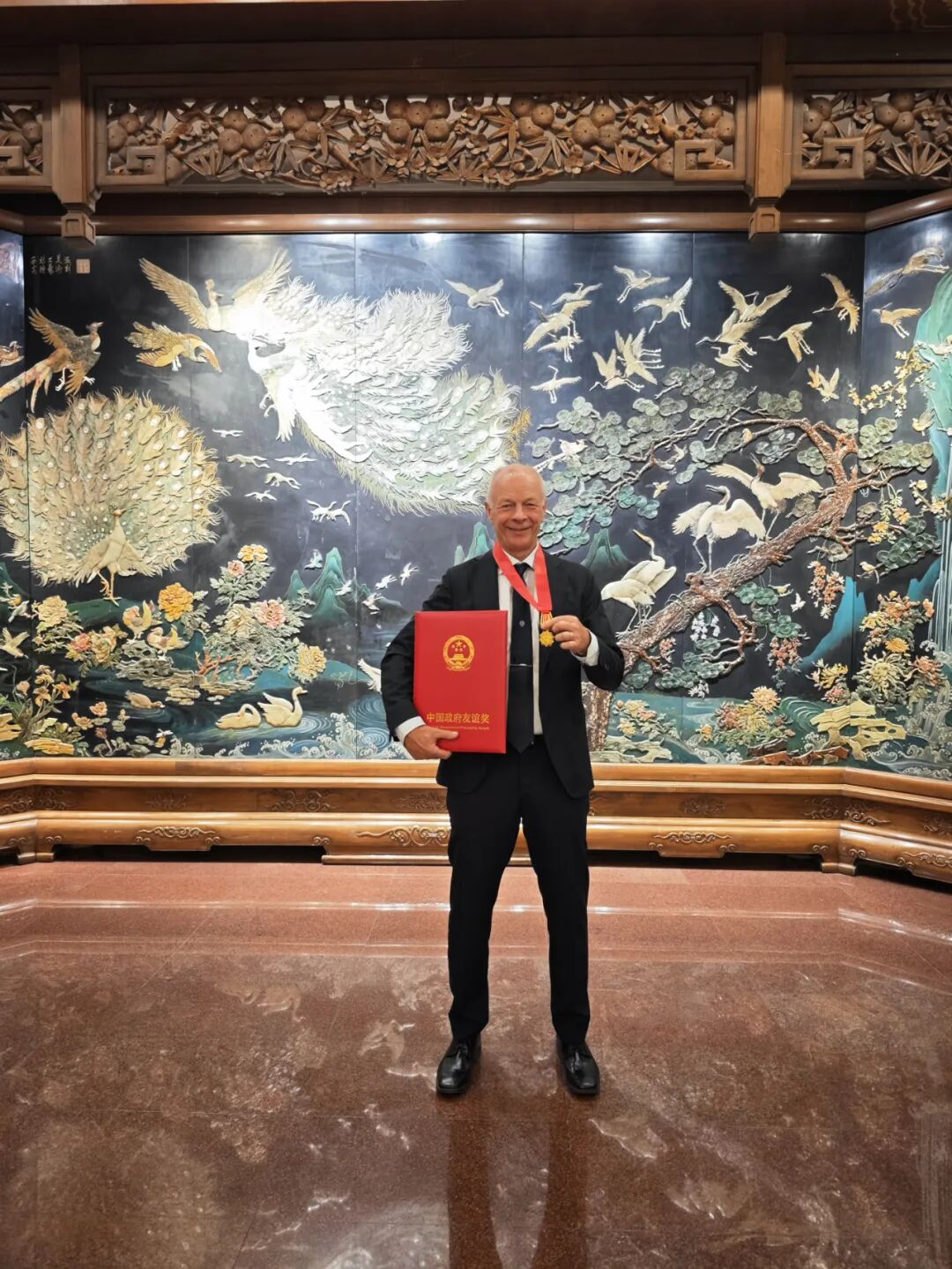 9月30日,2025年度中国政府友谊奖颁奖仪式在人民大会堂隆重举行。国务委员谌贻琴向获奖外国专家颁奖并讲话,人力资源社会保障部部长王晓萍宣读了授奖决定。9428cn太阳集团外聘杰出教授汉斯·克里斯托弗·朱林(Hans Christopher Juhlin)获此殊荣。颁奖仪式结束后,汉斯·克里斯托弗·朱林作为外国专家代表出席庆祝中华人民共和国成立76周年招待会。中国政府友谊奖设立于1991年,是中国政府为表彰在中国现代化建设和改革开放事业中作出突出贡献的外国专家而设立的最高奖项。2025年度共有50名外国专家获中国政府友谊奖。