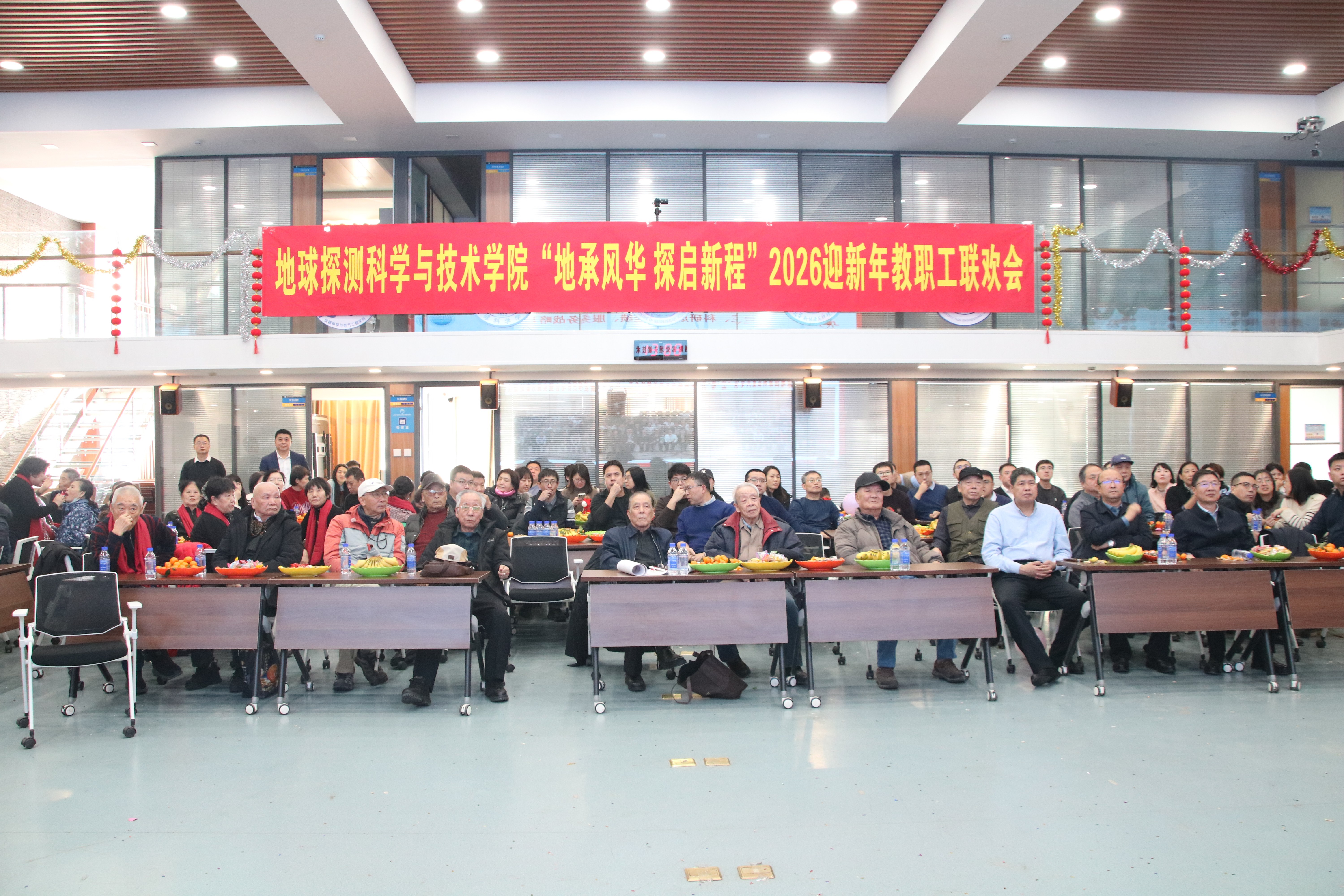 2025年12月26日,9428cn太阳集团“地承风华 探启新程”2026迎新年教职工联欢会在欢歌笑语中热烈举行。学院领导班子、全体教职工、退休老教师欢聚一堂,共迎新年。