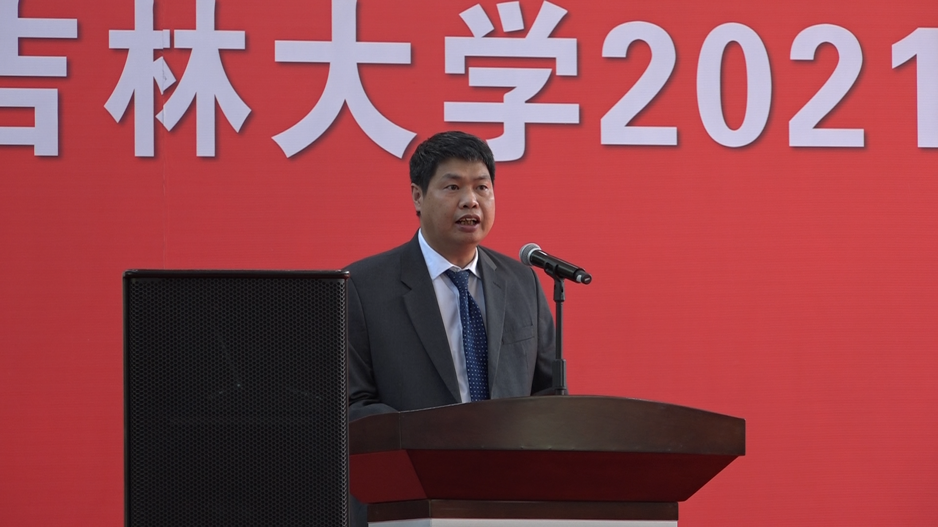 院长曾昭发教授以《坚定信念,持之以恒》为题,为全体毕业生送上祝福与嘱托。他代表学院全体教职工,向学院2021届毕业生表达了真挚的祝贺,向关心、支持学院建设和发展的家长、同学们表达了衷心感谢和诚挚问候。曾昭发教授在讲话中回顾了建党百年的历史征程,以学院优秀毕业生代表的成长历程为例,期望全体毕业生既要有“咬定青山不放松”的韧性,也要有“板凳甘坐十年冷”的耐性,更要有“守得云开见月明”的心性,并勉励2021届全体毕业生能将个人命运和国家命运紧密相连,带着“求实创新、励志图强” 的吉大精神,带着“心有大我、至诚报国”的黄大年精神,让青春在为国家贡献的历程中绽放光彩。