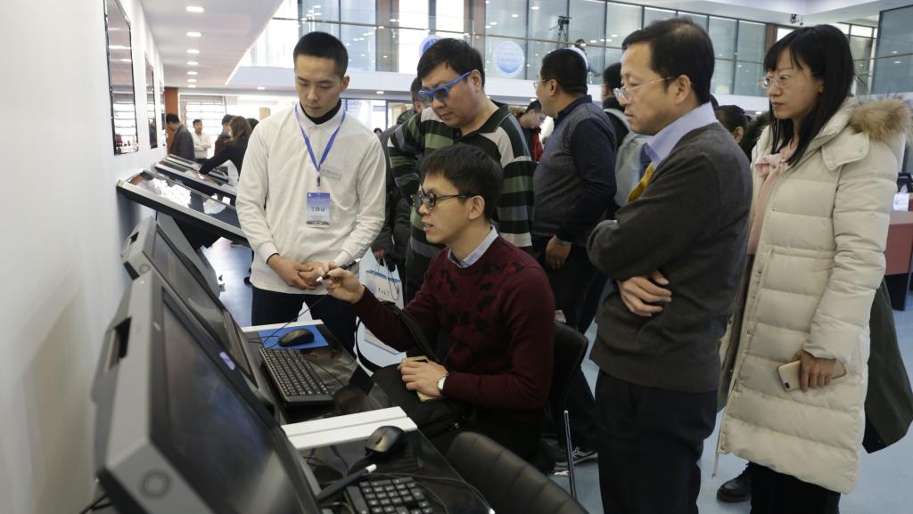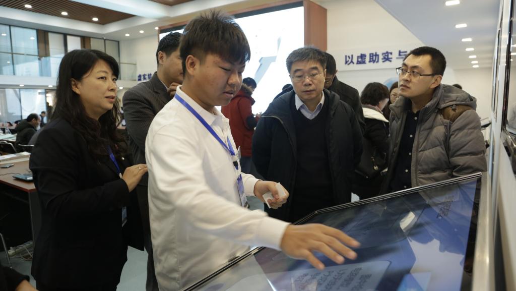 会议现场,与会代表参观了地质资源立体探测虚拟仿真实验教学中心,亲自体验了VR、AR等虚拟仿真项目及智慧实验室的各项功能。各位与会领导、项目负责人及企业负责人等开展了热烈的经验交流及讨论,并共同合影留念。