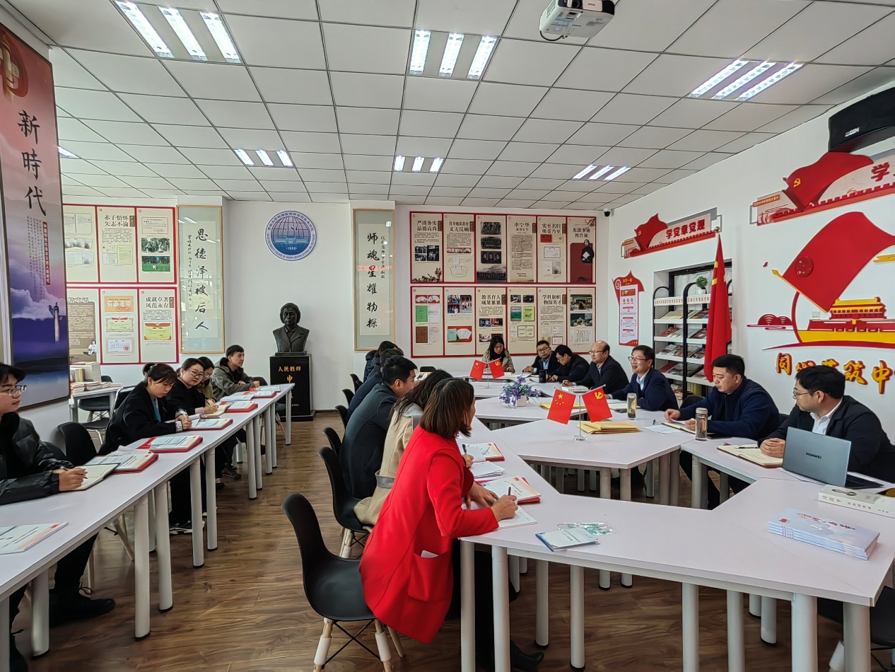 会上,院党委书记卜立平传达了教育部党组、学校党委学习宣传党的二十大精神等会议的精神要求和工作部署。他结合自己学习体会,领学了党的二十大报告的新观点、新论断、新思想、新战略、新要求,希望全员师生守正创新,踔厉奋发,坚持立德树人根本任务,不断提升学院教学、科研和人才培养水平。卜立平强调,学院党委理论学习中心组要发挥示范作用、各党支部书记要担当政治责任、发挥引领作用,全体党员和师生要把学习宣传贯彻党的二十大精神作为当前和今后一段时间首要政治任务,通过理论学习中心组、“三会一课”、学习体会交流等多种方式,学深悟透精髓要义,切实把思想和行动统一到党的二十大决策部署上来。