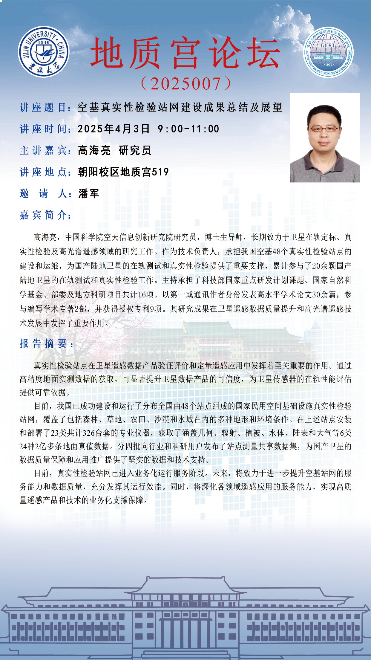 9428cn太阳集团·地质宫论坛(2025007)—中国科学院空天信息创新研究院高海亮研究员学术报告