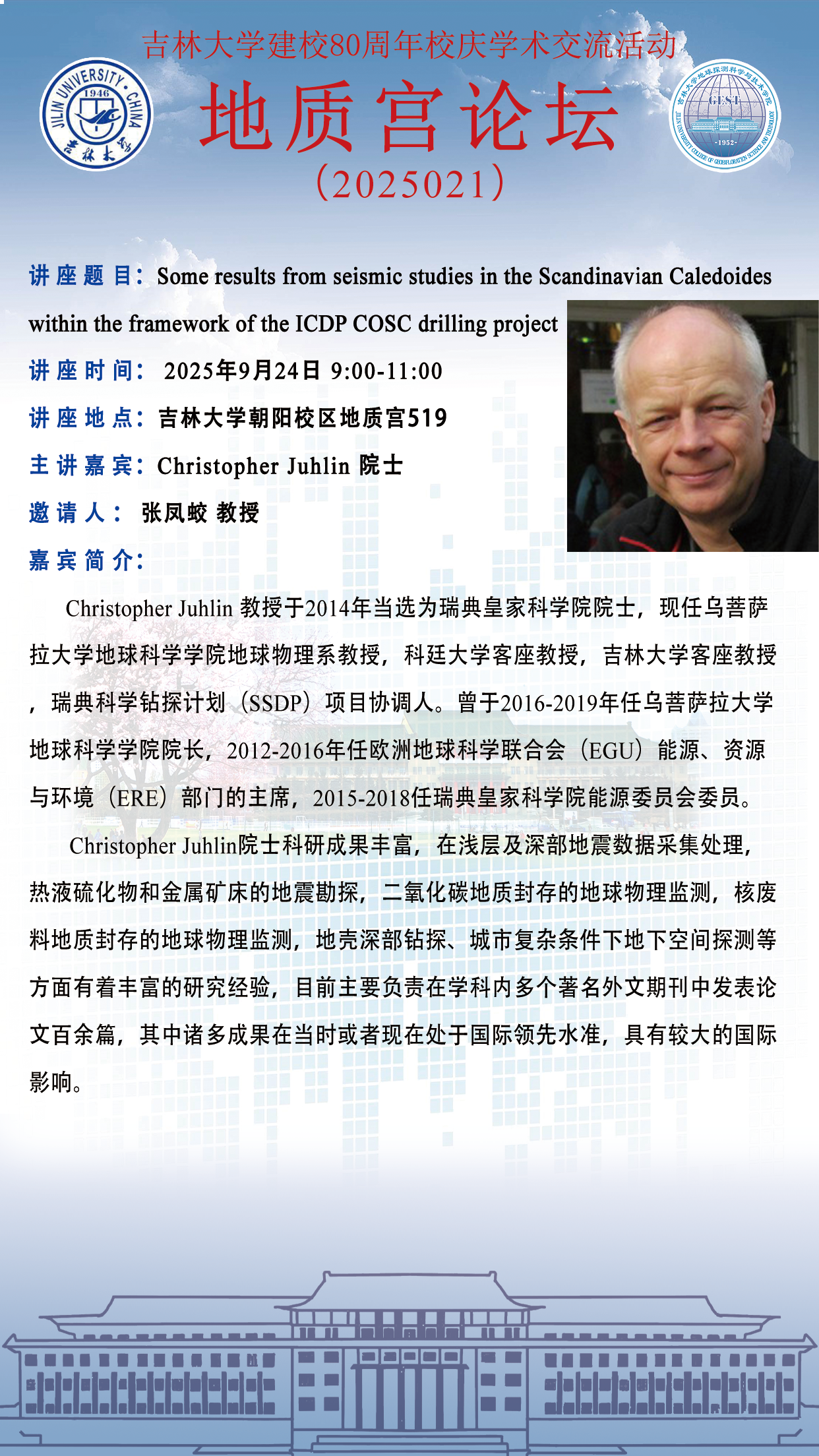 9428cn太阳集团·地质宫论坛(2025021)— 瑞典皇家科学院Christopher Juhlin院士学术报告
