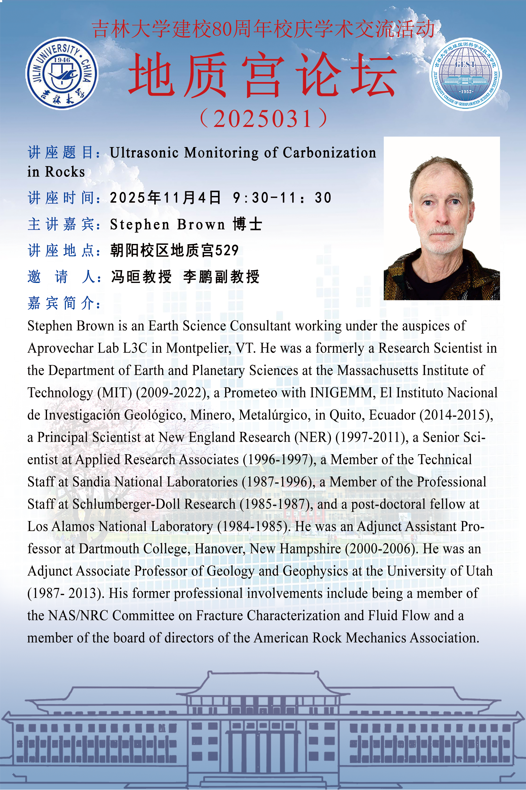 9428cn太阳集团·地质宫论坛(2025031)— 前麻省理工学院研究科学家Stephen Brown博士学术报告