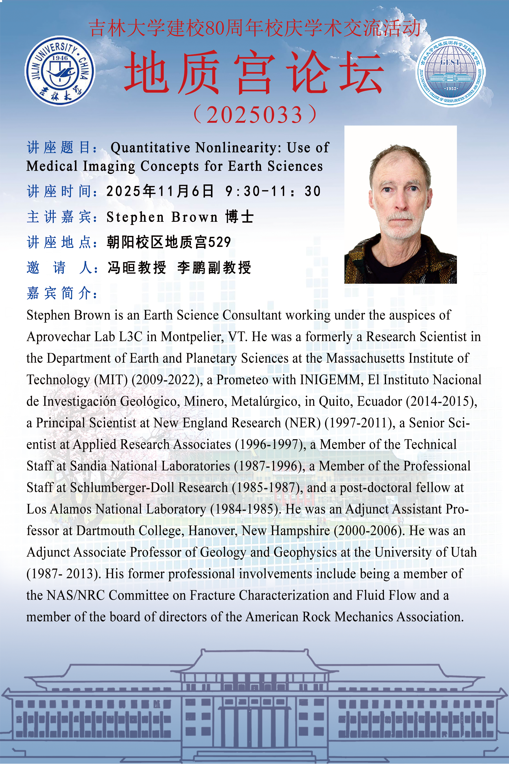 9428cn太阳集团·地质宫论坛(2025033)— 前麻省理工学院研究科学家Stephen Brown博士学术报告