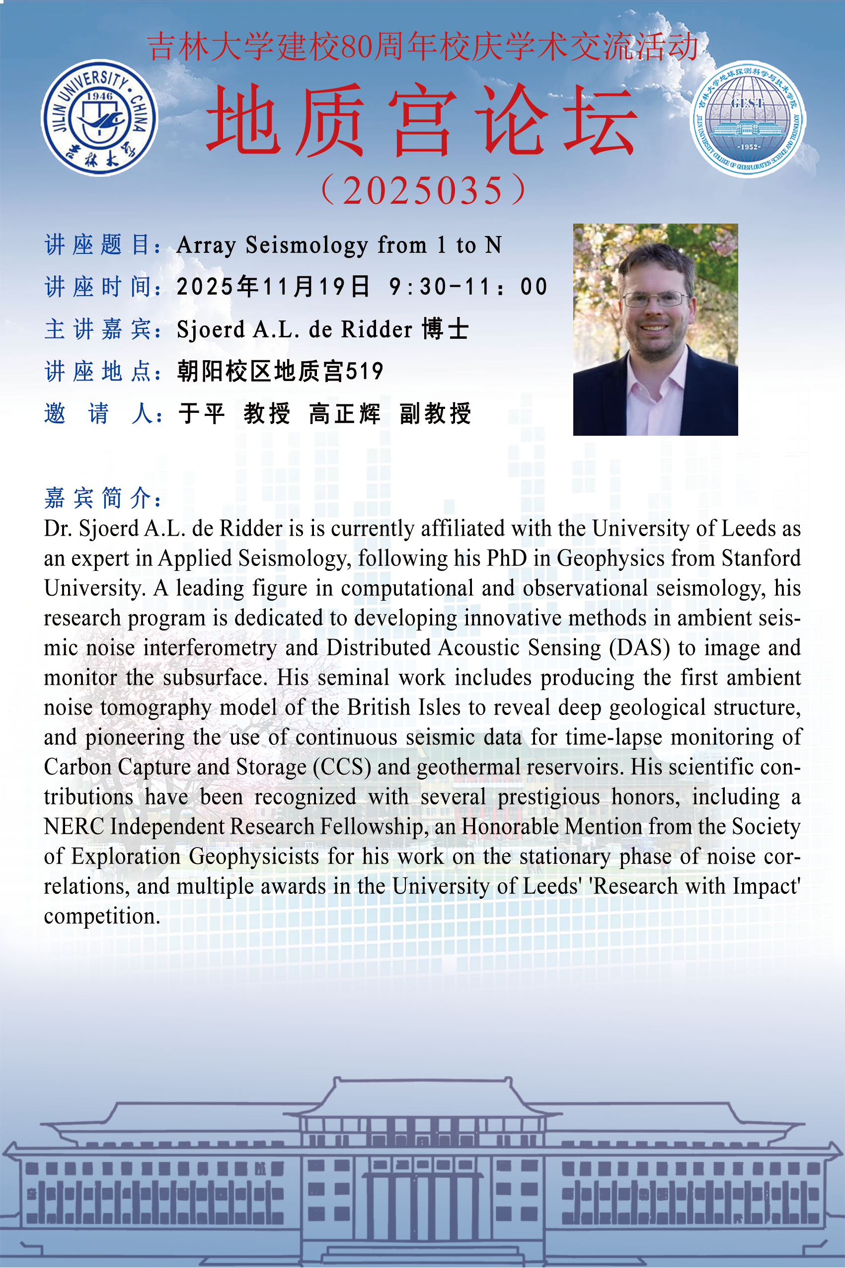 9428cn太阳集团·地质宫论坛(2025035)— 英国利兹大学Sjoerd A.L. de Ridder博士学术报告