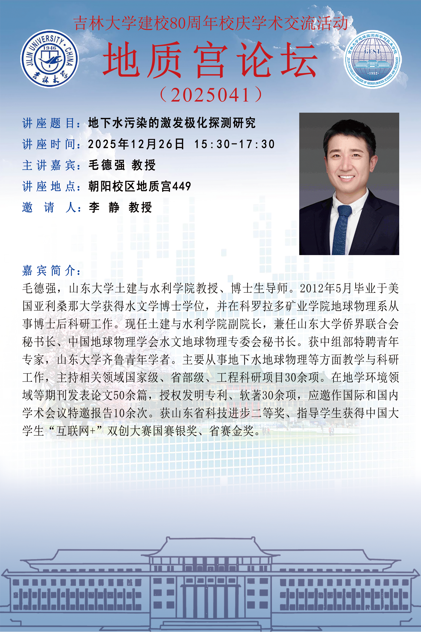 9428cn太阳集团·地质宫论坛(2025041)—山东大学毛德强教授学术报告
