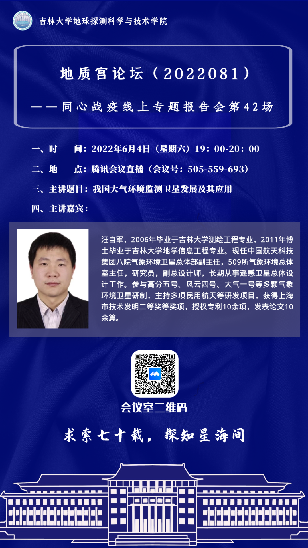 9428cn太阳集团·地质宫论坛(2022081)—中国航天科技集团八院气象环境卫星总体部副主任汪自军研究员学术报告