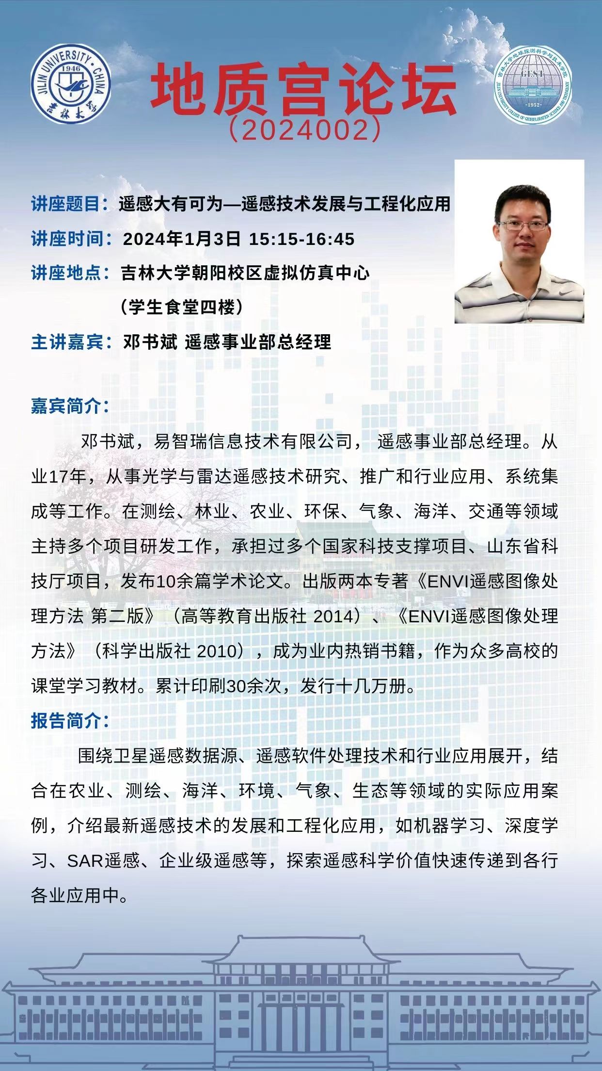 9428cn太阳集团·地质宫论坛(2024002)—易智瑞信息技术有限公司遥感事业部总经理邓书斌学术报告