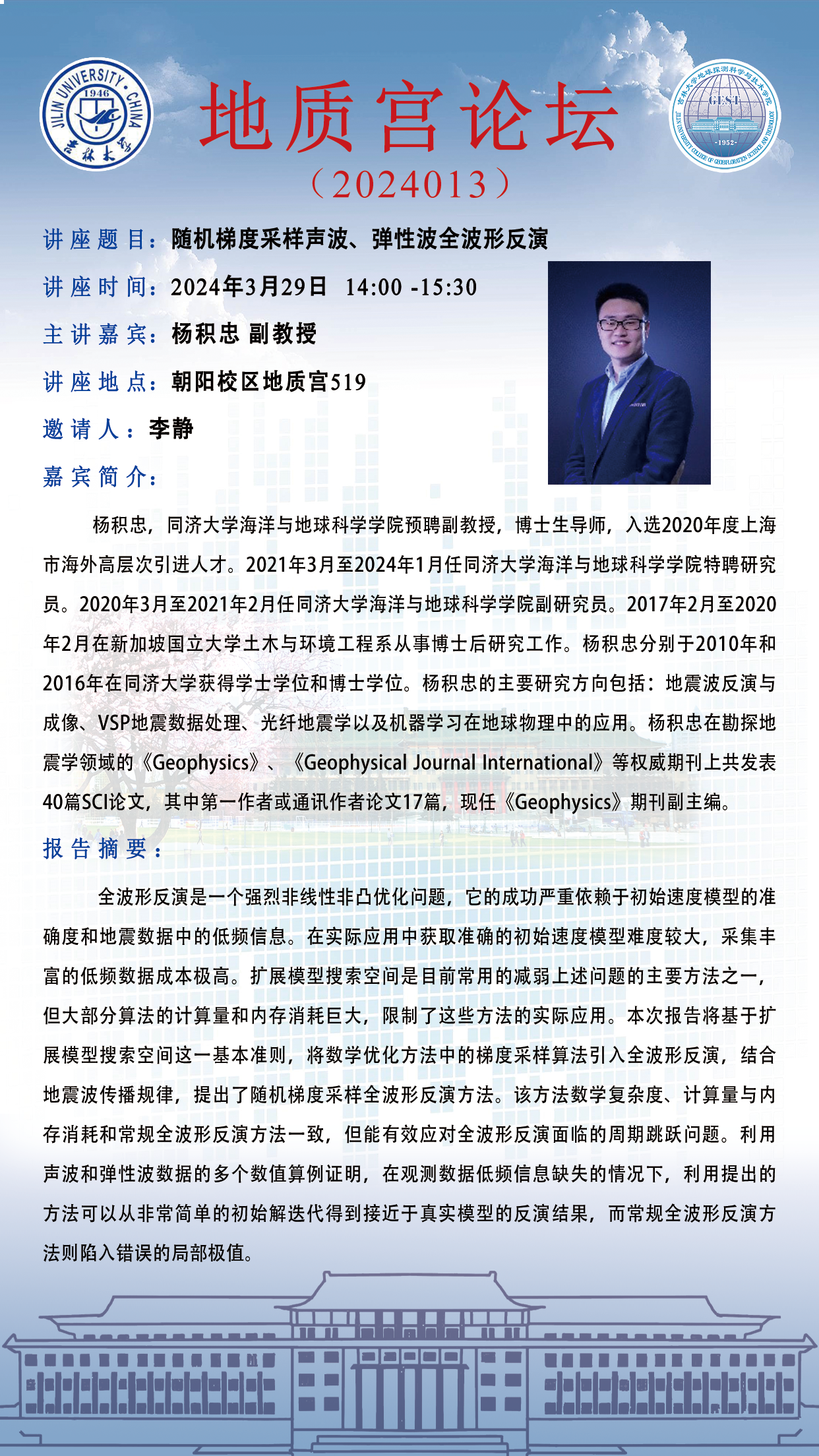 9428cn太阳集团·地质宫论坛(2024013)—同济大学海洋与地球科学学院杨积忠预聘副教授学术报告
