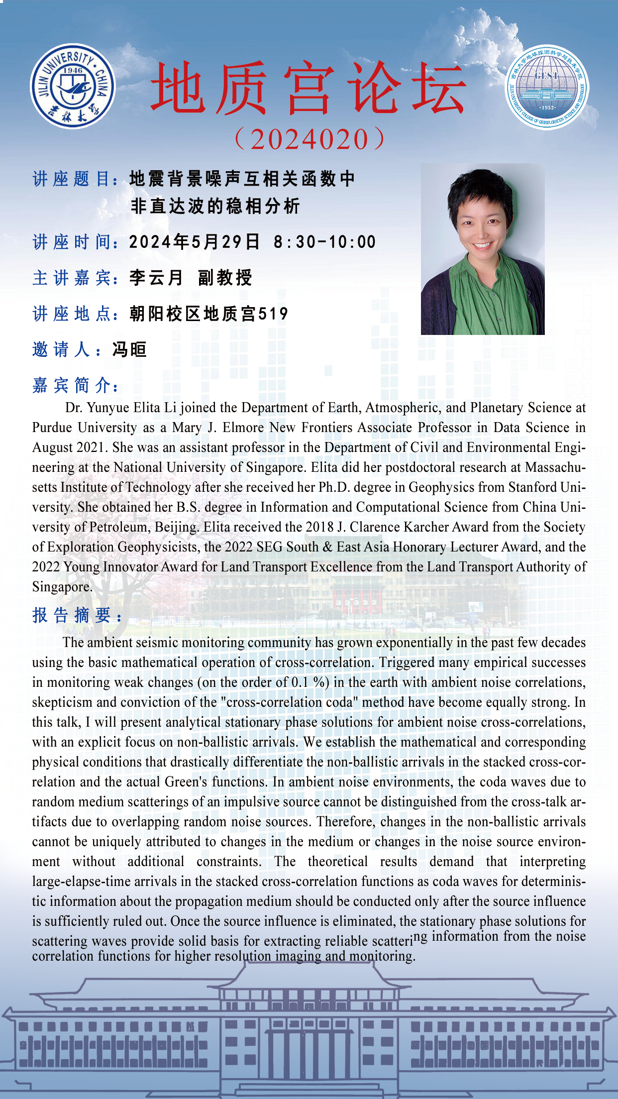 9428cn太阳集团·地质宫论坛(2024020)—美国普渡大学李云月副教授学术报告