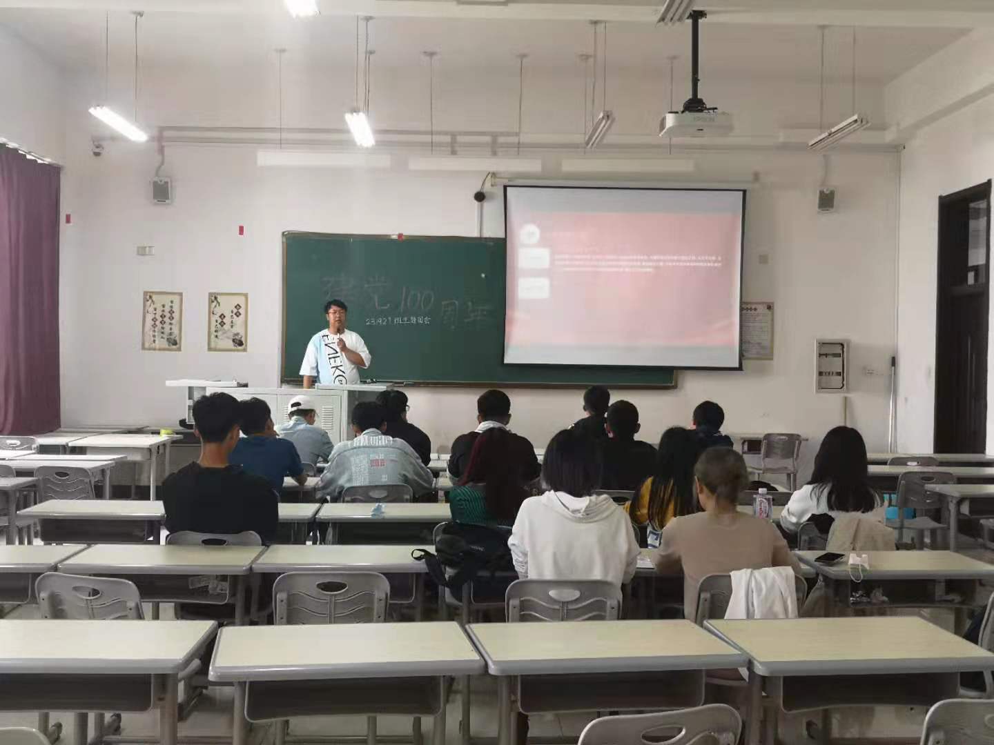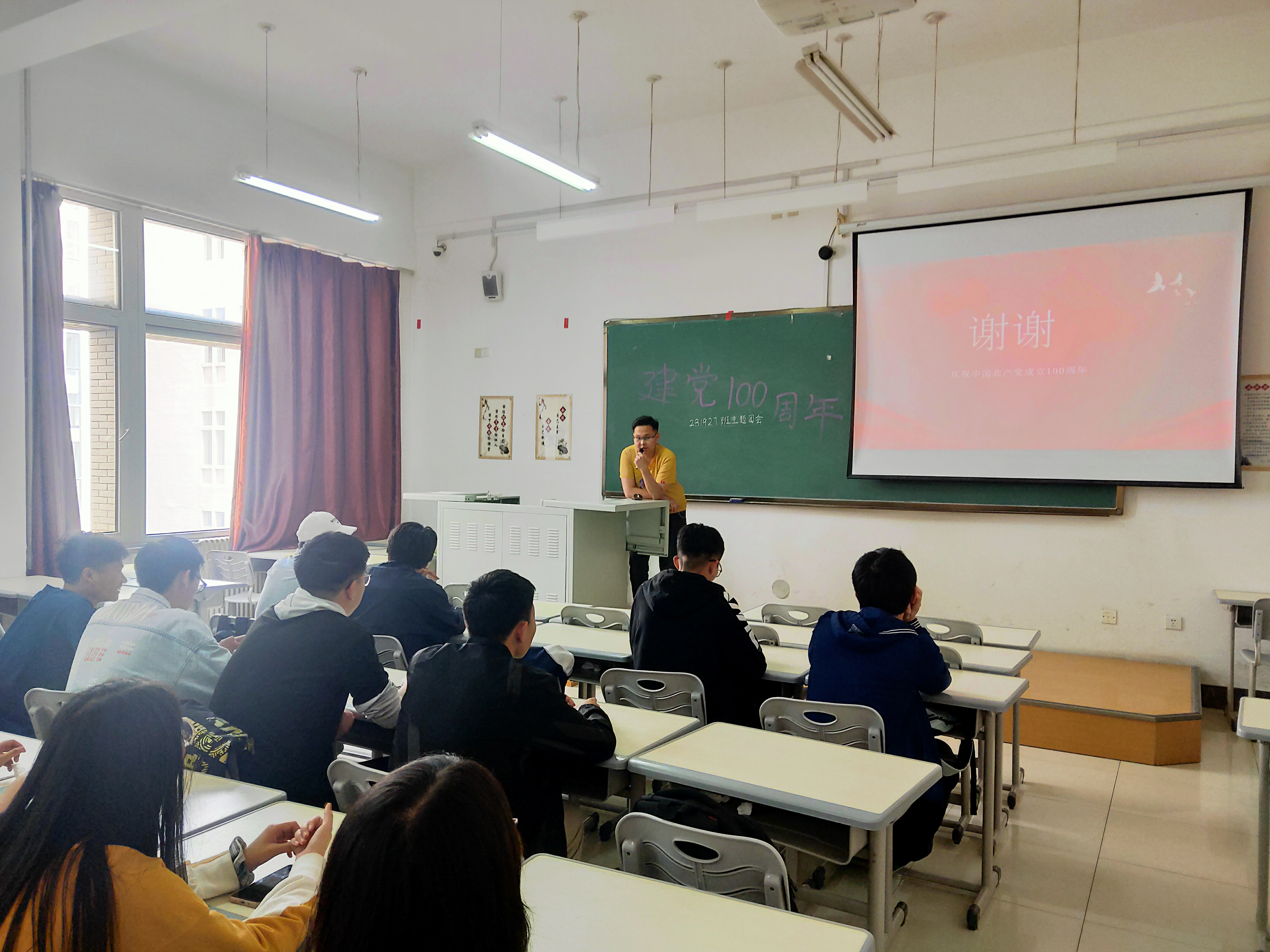 活动开始,由7班团支书王文彪向大家做了建党100年的演讲,同学们用党的奋斗历程和伟大成就鼓舞斗志、明确方向,用党的光荣传统和优良作风坚定信念、凝聚力量,用党的实践创造和历史经验启迪智慧、砥砺品格。