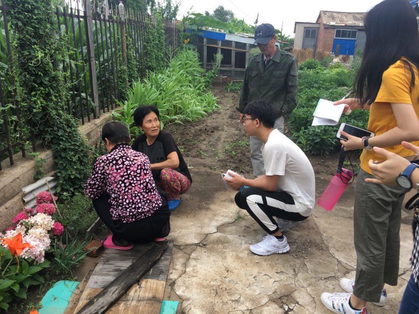 2018年7月08日清早,团队八人步行来到四平市公主岭市南崴子镇政府,受到了镇长及书记的热情招待,镇长热情的向同学们介绍了鲜丰村的历史及现况,同时也能感受到他们所寄寓的期望。介绍之后,镇长带领同学们前往鲜丰村进行调研,并与村委会进行对接。接下来,团队八人开始进行与村民之间的走访调研。经过几天的调研,队员们了解到:鲜丰村是朝鲜族自治村,村中大多数居民都是中老年人和未成年人。村中的居民都是朝鲜族,掌握朝鲜语,所以村中的年轻人选择前往韩国进行打工赚取钱财养活家庭,每年回家一到两次看望老人,导致村内劳动力大大减弱,老年人和孩子下田种地,没有劳动能力的家庭选择将土地外包收取租金。团队进行的现任重点是鲜丰村的精准扶贫和侨胞之家的建设,本团队希望能够对鲜丰村留守人口进行帮扶并尽可能消除村内贫困人口。2018年7月10日,团队八人驱车前往南崴子社会福利院进行慰问,了解到国家对福利院有明确的帮扶政策。在与福利院内老人交流的过程中,团队成员了解到,从福利院设立至今院内环境及基础设施得到了明显的改善。政府下发的物资能够精准落实到个人,老人在福利院内能够颐养天年。