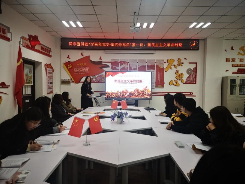 4月16日下午,9428cn太阳集团本科生第一党支部在地质宫403室举办了同学宣讲团“学百年党史·做优秀党员”第一讲:新民主主义革命时期。学生工作办公室主任金璐老师、研究生辅导员周仪老师出席了本次活动,活动由党支部副书记高若云同志主持。